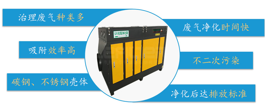 2、利用高能高臭氧UV紫外線光束分解空氣中的氧分子產生游離氧,即活性氧,因游離氧所攜正負電子不平衡所以需要與氧分子結合,進而生產臭氧,臭氧對紫外線光束照射分解后的有機物具有極強的氧化作用,對惡臭氣體及其它刺激性異味有良好的削除效果。