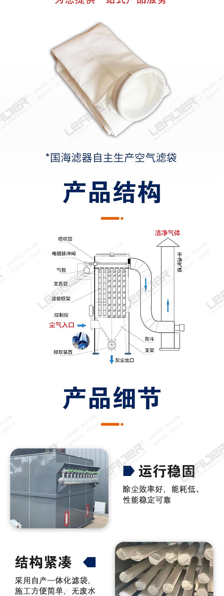 8.大容量儲氣裝置,高壓在線連續脈沖氣流清灰效果徹底,設備不受清灰的影響連續工作,適應高濃度的含塵氣體;
