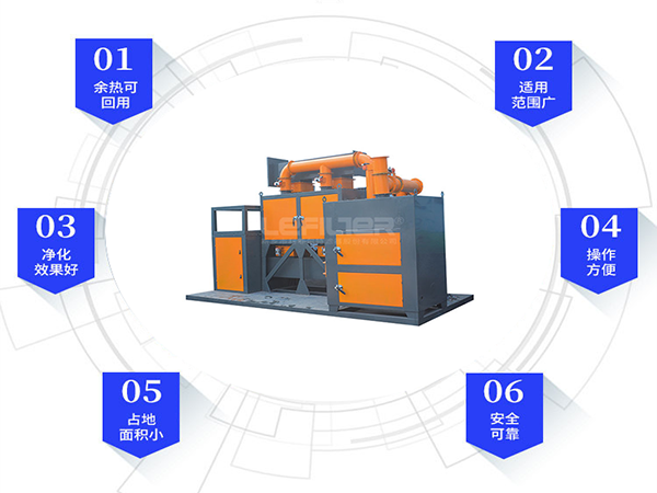 催化燃燒設(shè)備工作原理,在工業(yè)生產(chǎn)過程中,排放的有機尾氣通過引風(fēng)機進入設(shè)備的旋轉(zhuǎn)閥,通過選轉(zhuǎn)閥將進口氣體和出口氣體完全分開。氣體首先通過陶瓷材料填充層(底層)預(yù)熱后發(fā)生熱量的儲備和熱交換,其溫度幾乎達到催化層(中層)進行催化氧化所設(shè)定的溫度,這時其中部分污染物氧化分解;廢氣繼續(xù)通過加熱區(qū)(上層,可采用電加熱方式或天然氣加熱方式)升溫,并維持在設(shè)定溫度;其再進入催化層完成催化氧化反應(yīng),即反應(yīng)生成CO2和H2O,并釋放大量的熱量,以達到預(yù)期的處理效果。