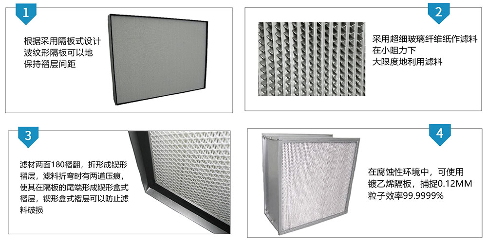 本款高效空氣過濾器用于空調過濾系統末端過濾,捕集0.3μm以上的微粒;適用于醫院、電子、食品、精密機械、半導體、無塵室等潔凈度高要求的場合;